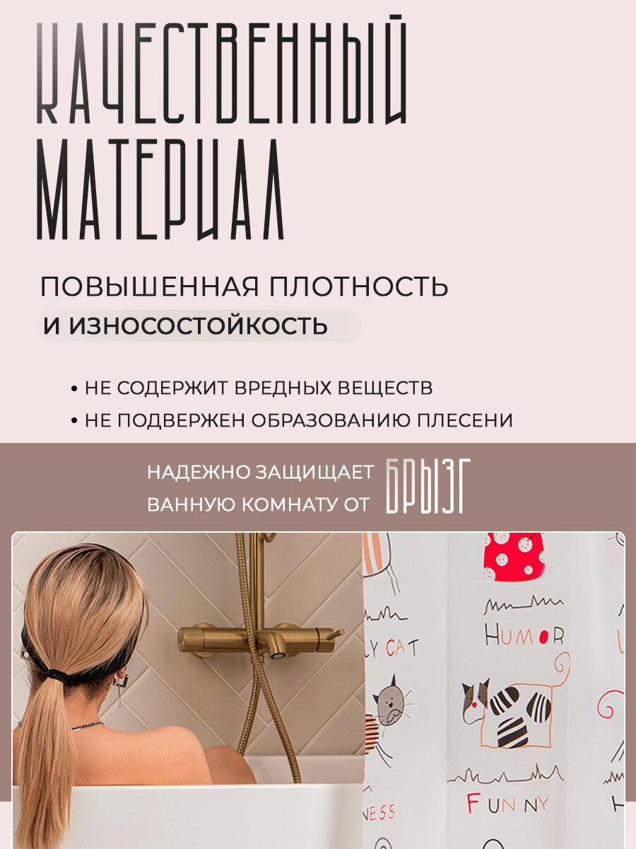 Отзывы на Штора для ванной комнаты с котами Доляна «Коты», 180×180 см, EVA