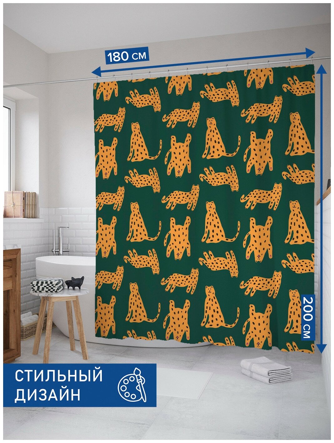 Штора в ванную тканевая с водоотталкивающей пропиткой "Стая леопардов", 180х200 , JoyArty информация: