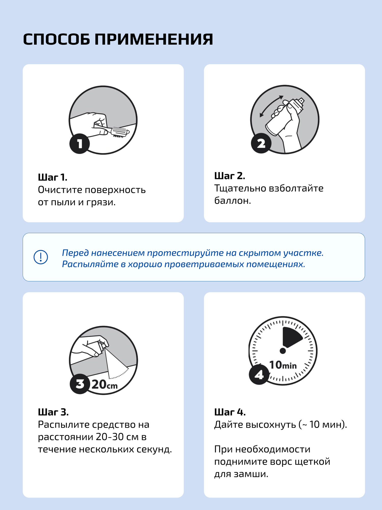 | Дополнительная информация | аэрозоль с высокой степенью защиты для замши, нубука. Питает и восстанавливает цвет изделиям из шероховатой кожи (одежда, обувь), придает стойкий водоотталкивающий эффект |