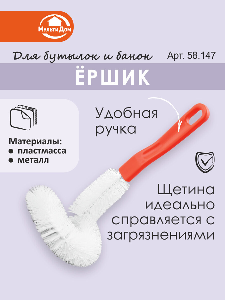 Отзывы на Щетка Мультидом, для банок и бутылок, длина 44 см, петля для подвешивания