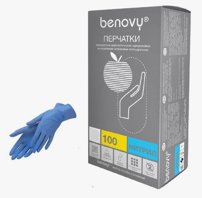 Benovy, перчатки медицинские нитриловые, 100 пар/200шт, р-р M