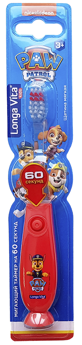 Детская Зубная щетка Щенячий патруль Longa Vita мигающий таймер, на присоске красная 259 ₽