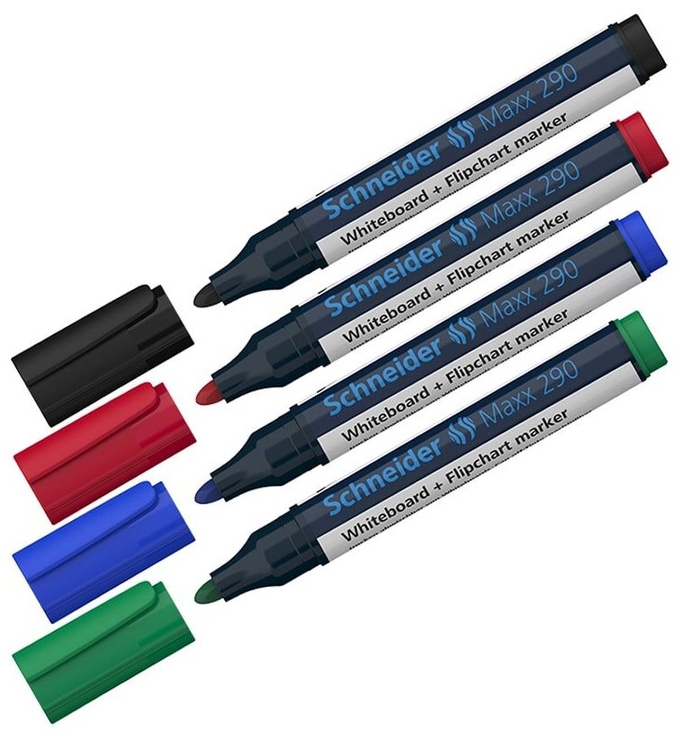Отзывы на 129094 Набор маркеров для белых досок и флипчартов Schneider "Maxx 290" 4цв., пулевидный, 3мм, прозр. чехол