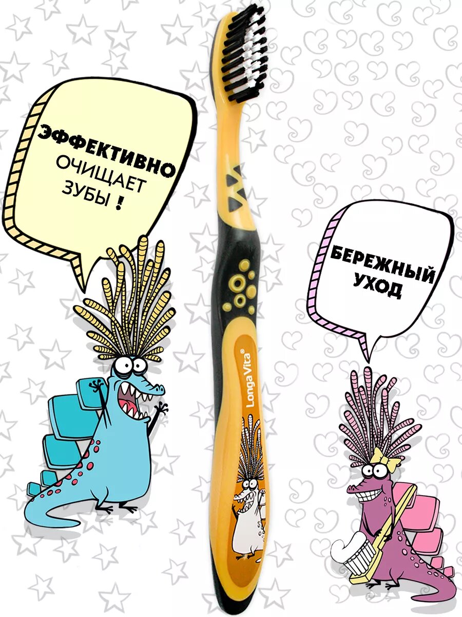 Детская зубная щетка Longa Vita Junior от 6-и лет, мягкая, цвет чёрный
