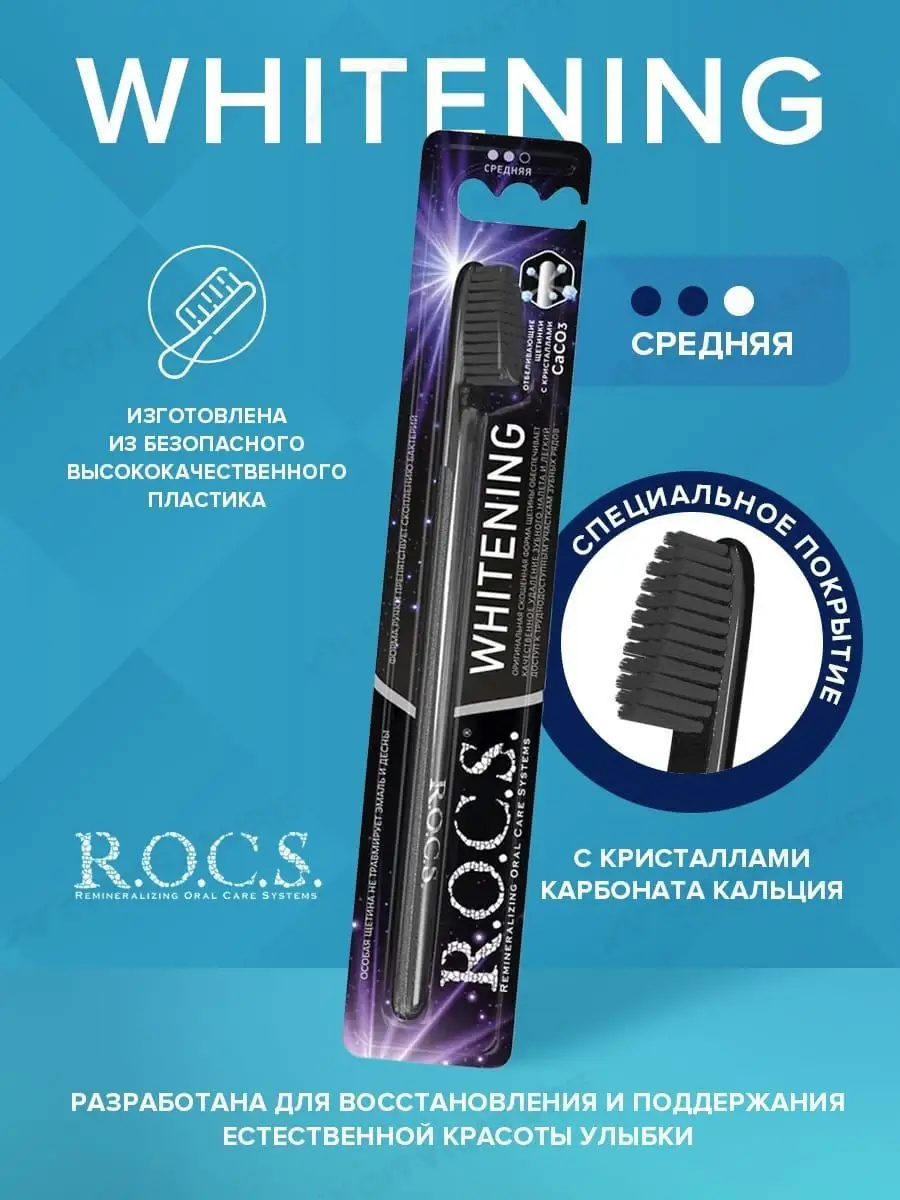 Зубная щетка R.O.C.S. WHITENING Отбеливающая, средняя жесткость, черная/черная информация: