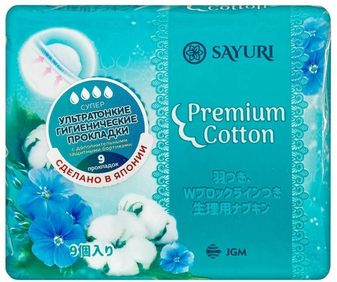 Sayuri Premium Cotton Прокладки Супер 24см 9шт. (Япония)