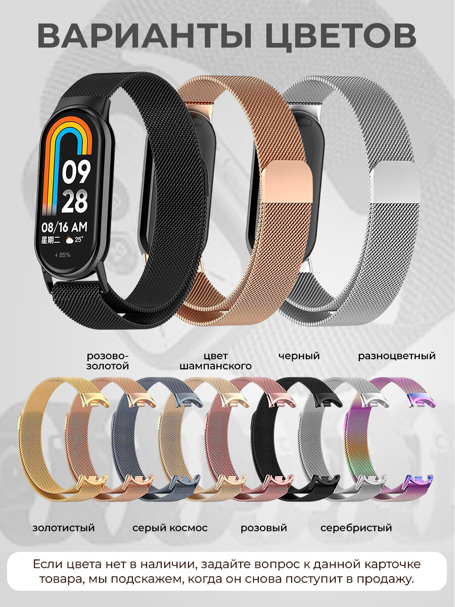 Ремешок для умных часов Xiaomi Mi Band 8, миланская петля, серый космос 699 ₽
