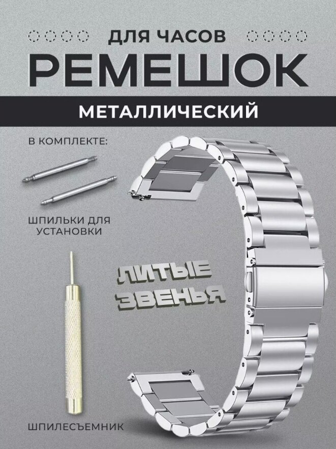 Металлический стальной браслет из нержавеющей стали для Huawei Watch GT / GT2 / Samsung Gear S3/ 22 мм, серебристый. информация: