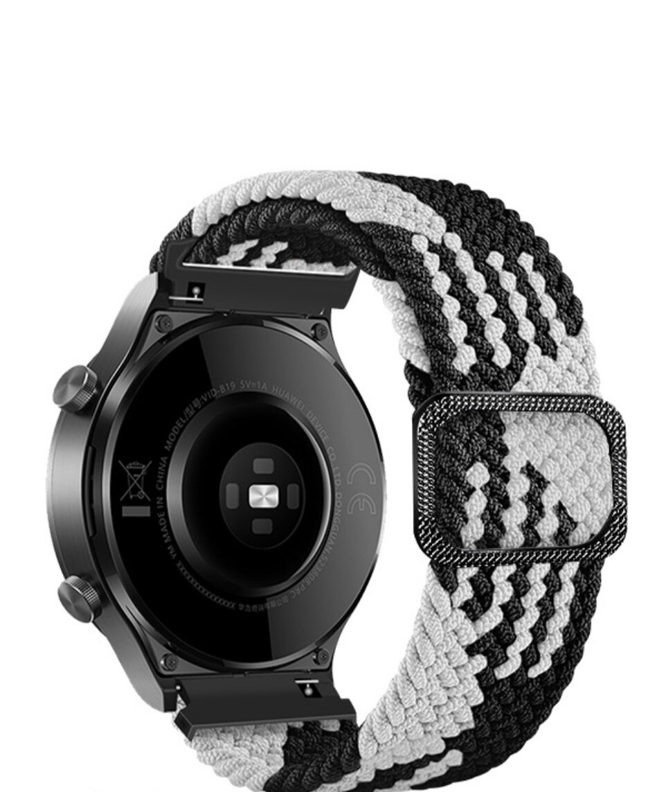 10 цен на Ремешок High Tech, для Samsung Galaxy Watch 3/GT2/Gear S3/Amazfit, плетеный нейлон, 22 мм. Цвет черный/белый.