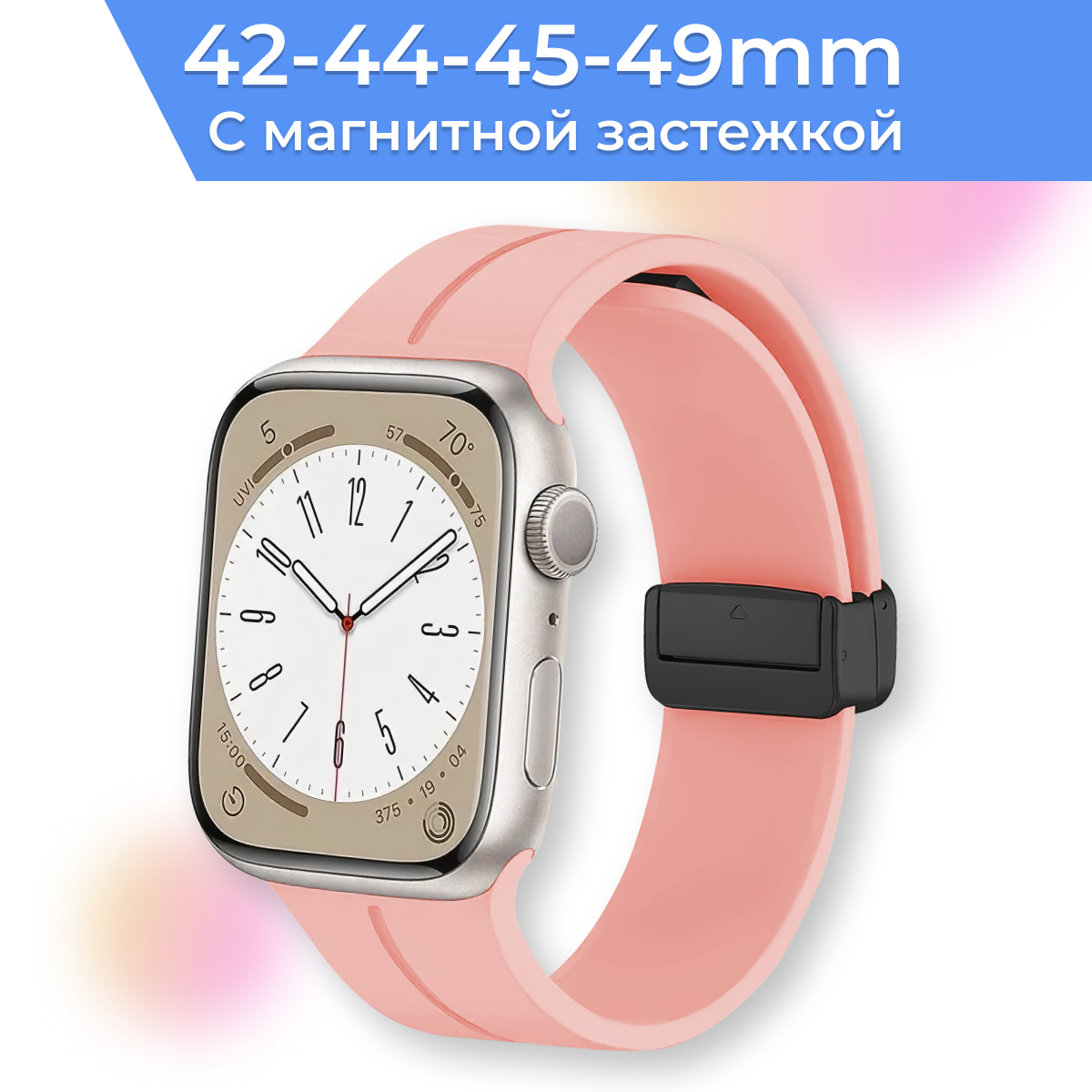 Силиконовый ремешок с магнитной застежкой для умных часов Apple Watch 42-42-45-49 mm / Сменный браслет на смарт часы Эпл Вотч 1-9, SE, Ultra серии / Розовый 461 ₽