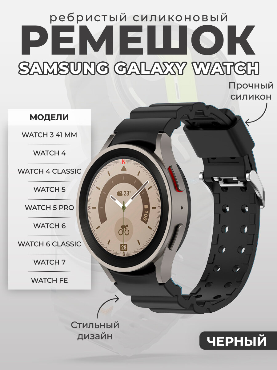Ребристый силиконовый ремешок для Samsung Galaxy Watch 3/4/5/6/7/FE, черный информация: