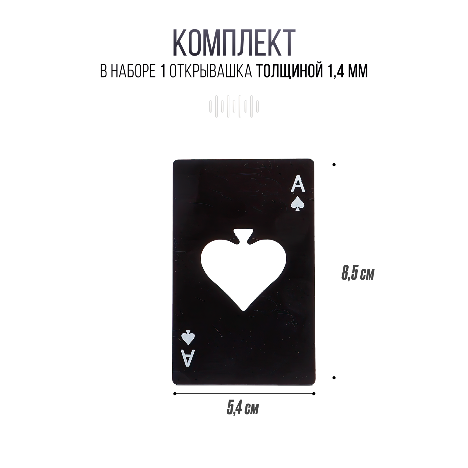 Металлическая открывалка - карта "Пиковый Туз", для пива, нержавеющая сталь, 2шт. 398 ₽