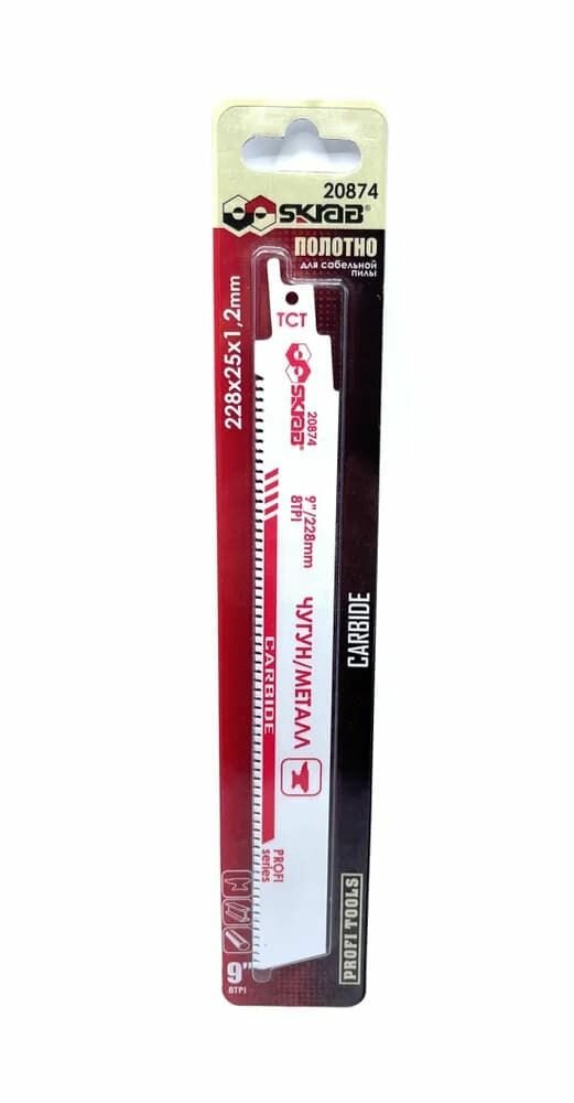 Полотно для сабельной пилы чугун металл 228х25х1,2мм CARBIDE TCT 8TPI Skrab 20874