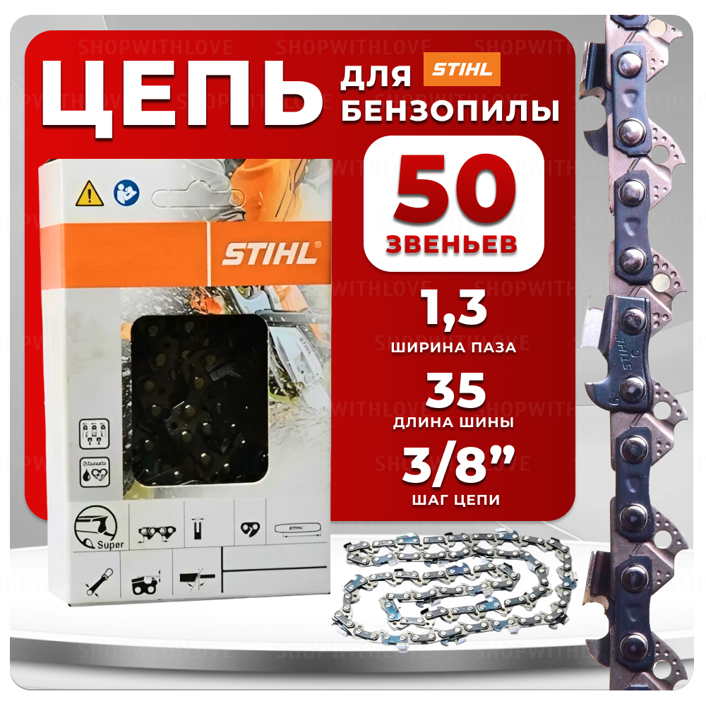 Цепь для бензопил STIHL, 3/8 дюйма, 1,3 мм, 50 звеньев, модель 63P