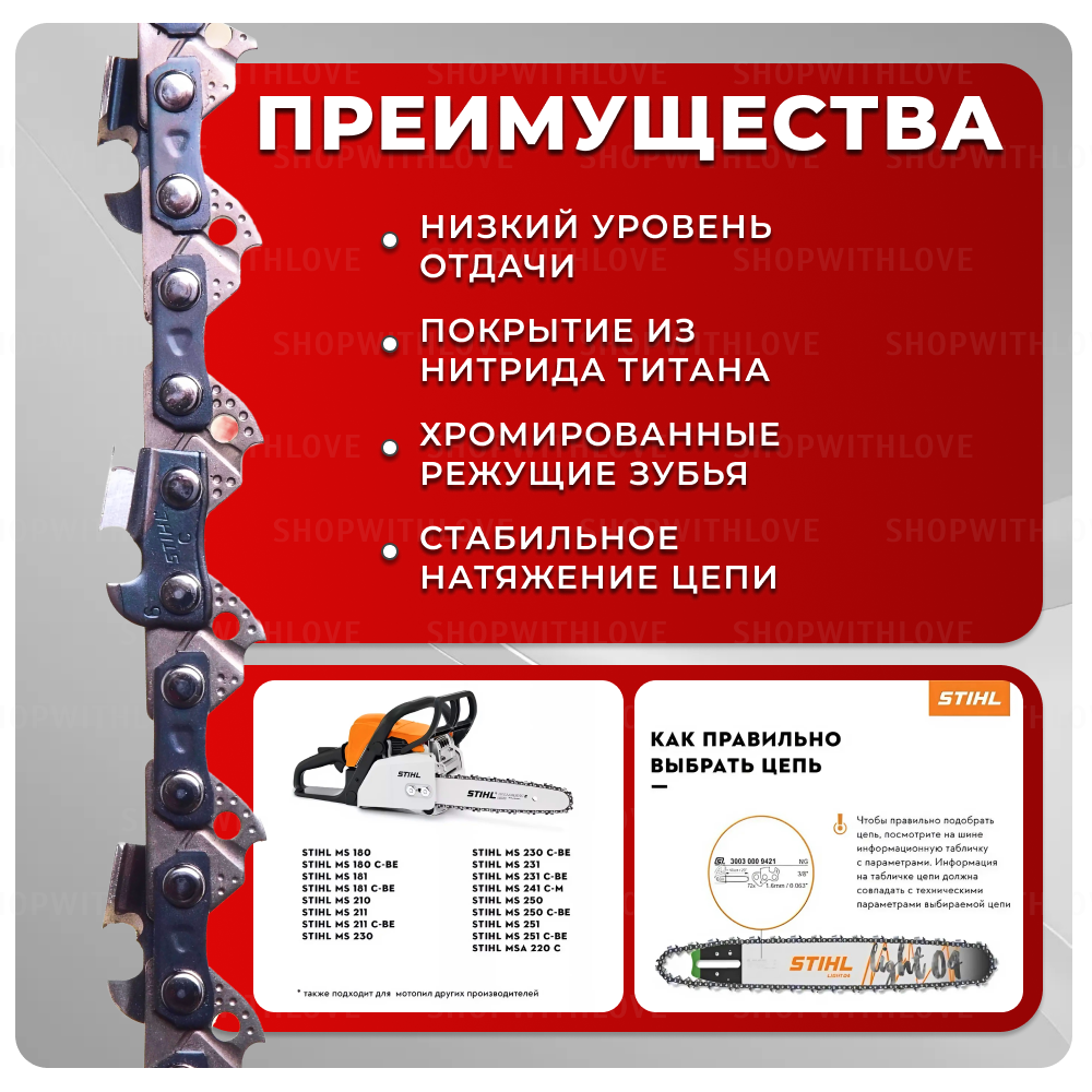 10 цен на Цепь пильная STIHL 3/8"-1,3-50 звеньев 63PS Оригинал Арт. 36170060050