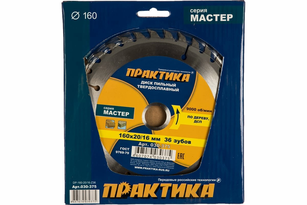 Диск пильный по дереву (160х20/16 мм, Z36) ПРАКТИКА 030-375 информация: