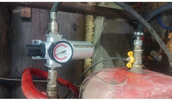 Влагоотделитель с регулятором давления (влаго-масляный сепаратор) 1/2 в комплекте с краном + быстросъемным соединением для компрессора