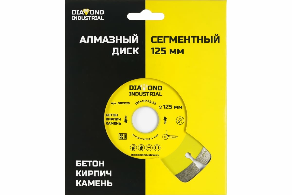 Диск алмазный сегментный (125 х 10 х 22,2 мм по бетону, кирпичу, камню) Diamond Industrial DIDS125 информация: