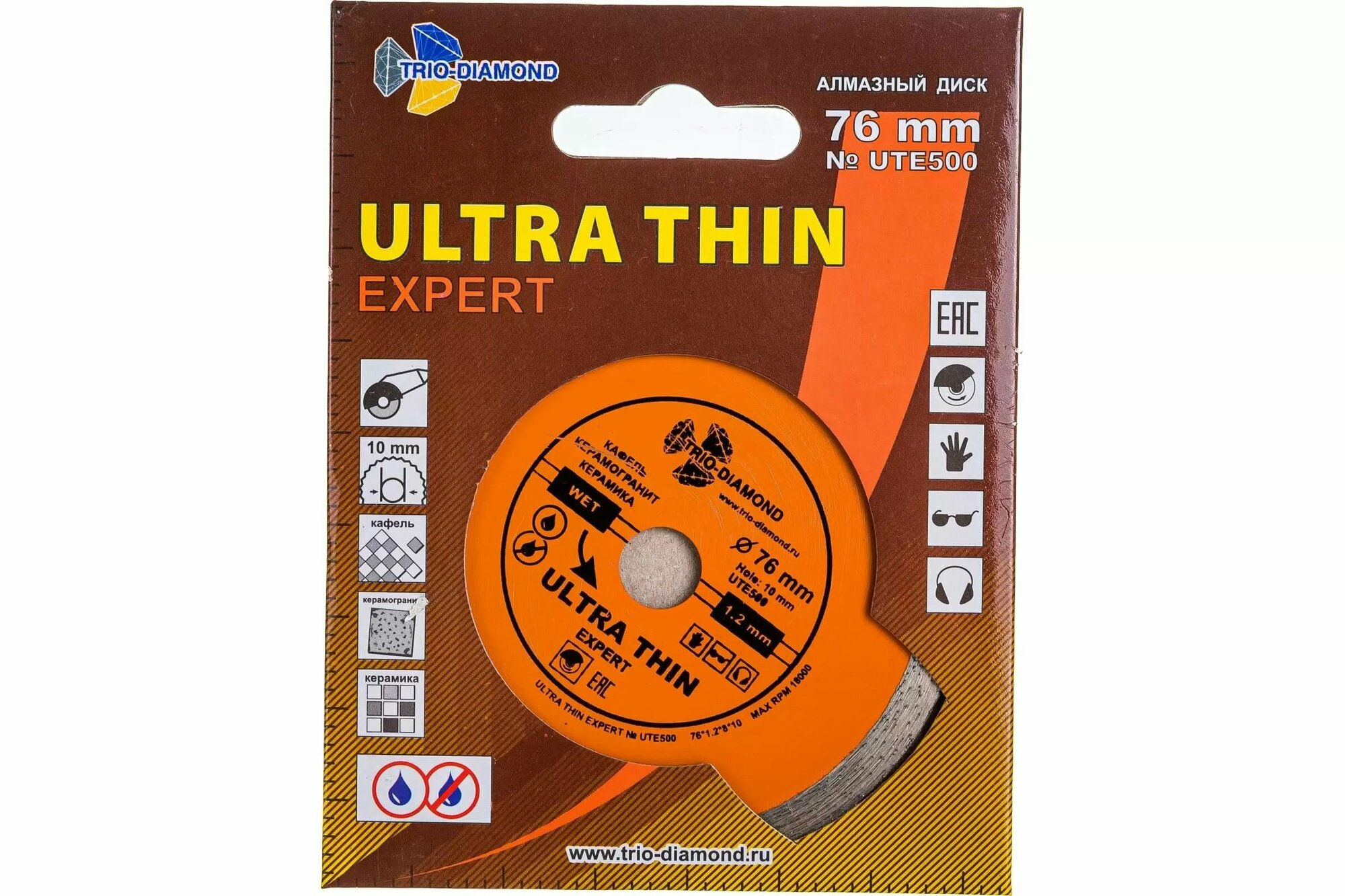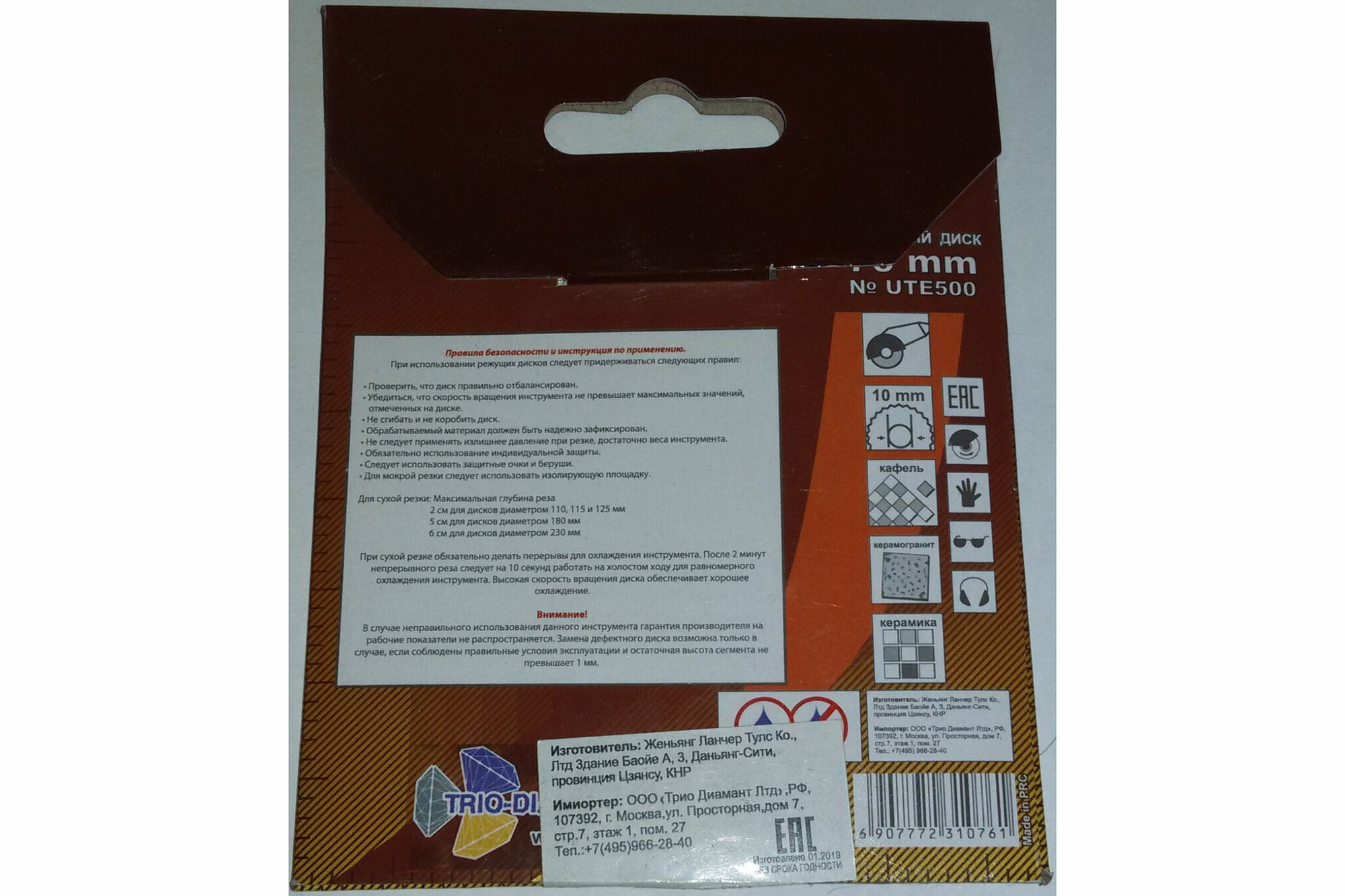 Диск алмазный отрезной по керамограниту (76х10 мм) Trio-Diamond UTE500 информация: