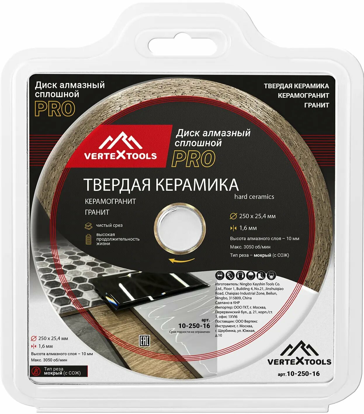 Диск алмазный по керамике Vertextools 250x25.4x1.6 мм информация: