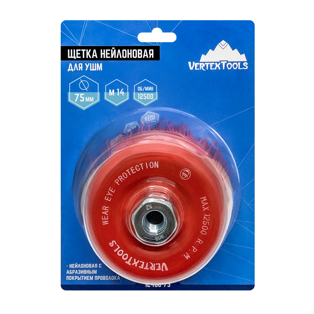 Щетка для УШМ, чашка для дрели нейлоновая 75мм VertexTools М14 информация: