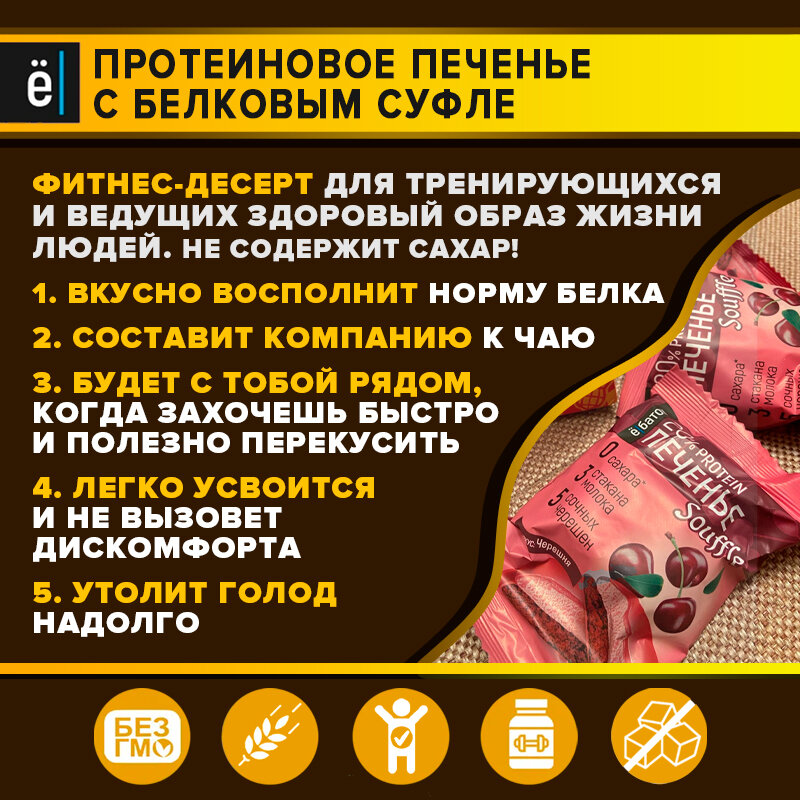 Протеиновое печенье ё|батон с белковым суфле без сахара и муки, 4 шт по 50 г Черешня информация: