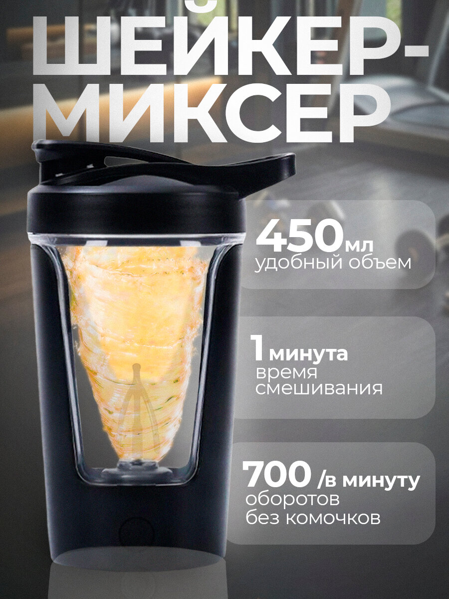 Электрический шейкер для спортивного питания и протеина, 450 мл, черный цвет информация: