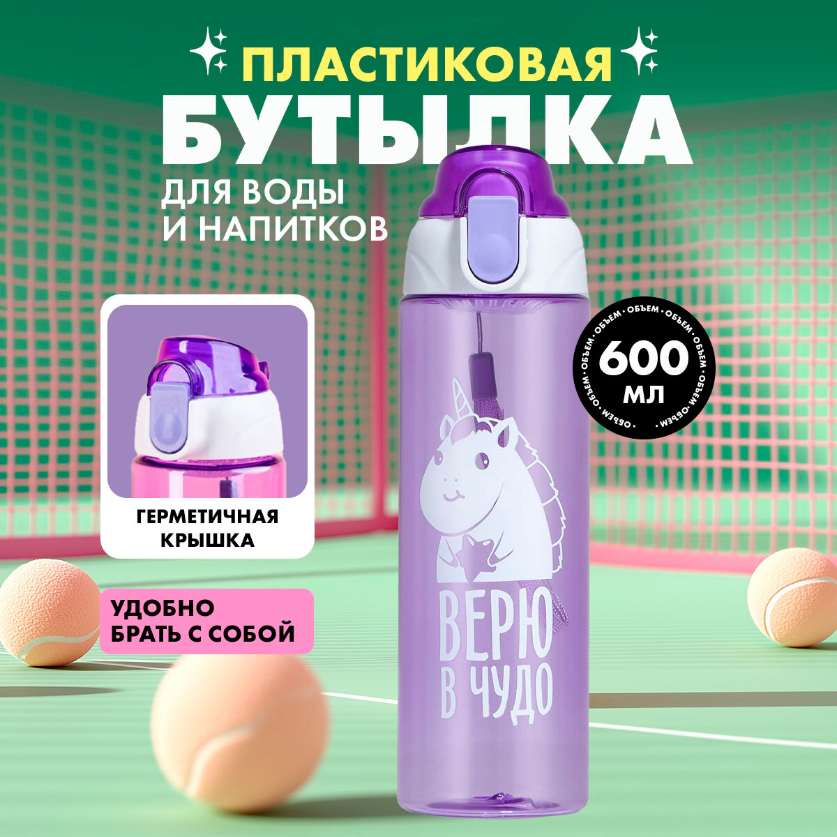 10 цен на Бутылка для воды спортивная «Верю в чудо», 600 мл, пластик, на подвесе