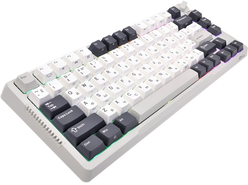| Комплектация | Клавиатура (цвет White Night); 4 дополнительных переключателя; cъемник переключателей; кабель USB-C 1,8м; беспроводной USB адаптер; инструкция, пластиковый кожух для защиты от пыли |