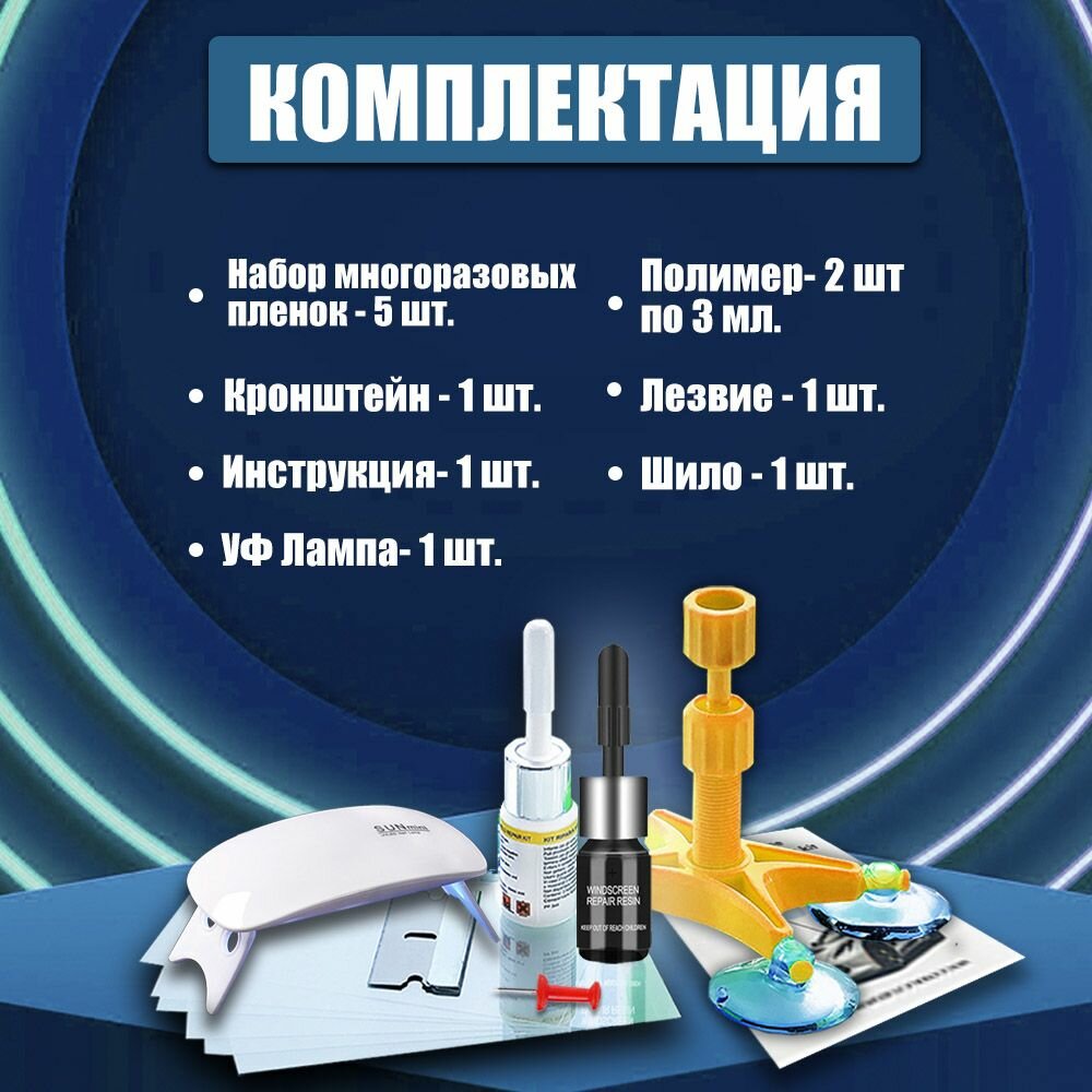 Ремкомплект для ремонта сколов и трещин лобового стекла автомобиля. информация: