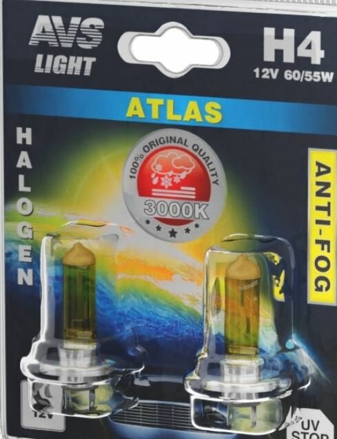 Лампа галогенная AVS ATLAS ANTI-FOG / BOX желтый H4.12V.60/55W (1 шт.)