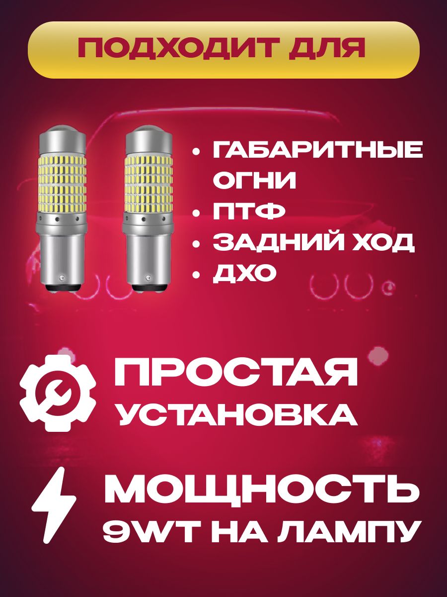 Светодиодные LED лампы P21W в стоп-сигнал, задний ход, дневные ходовые огни, одно контактные, биполярные, 12-24V, белый свет, 2шт.. 699 ₽