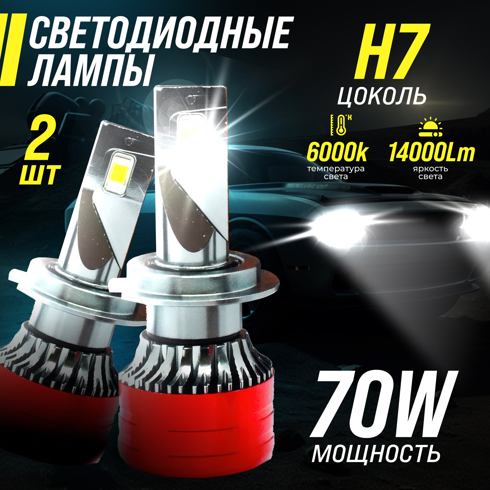 H7 светодиодная лампа автомобильная лампы,60 Вт,9-16В,6500K,15000LM,2шт