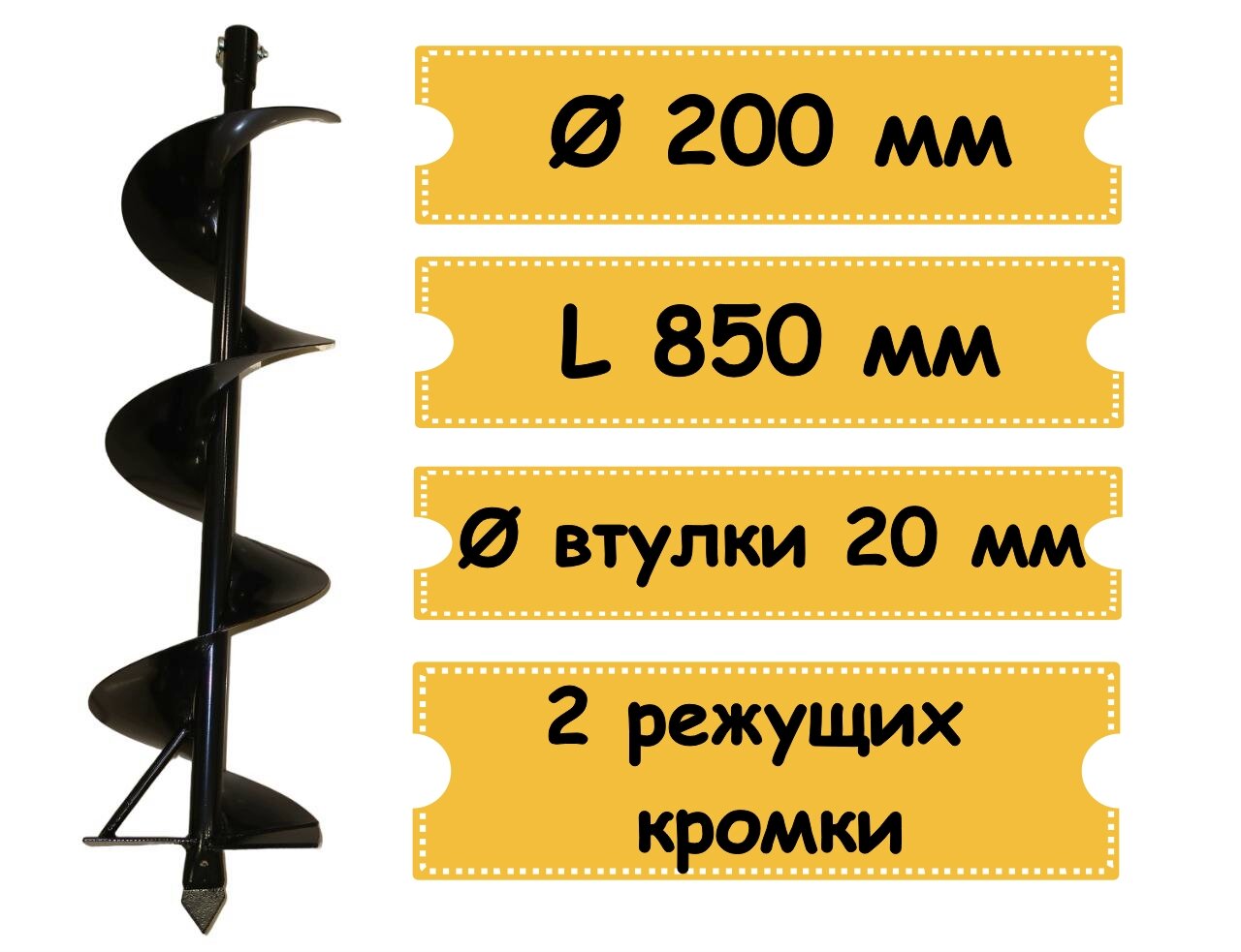 Шнек для грунта 200 мм для мотобура, посадка 20 мм