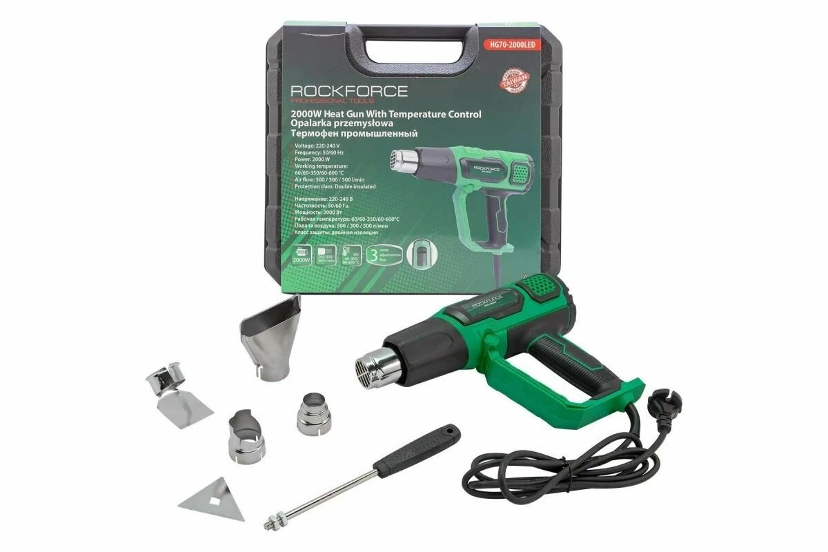 10 цен на Фен промышленный RF-HG70-2000LED с насадками,3 реж, кл. защиты-двойная изоляция)в кейсе ROCKFORCE