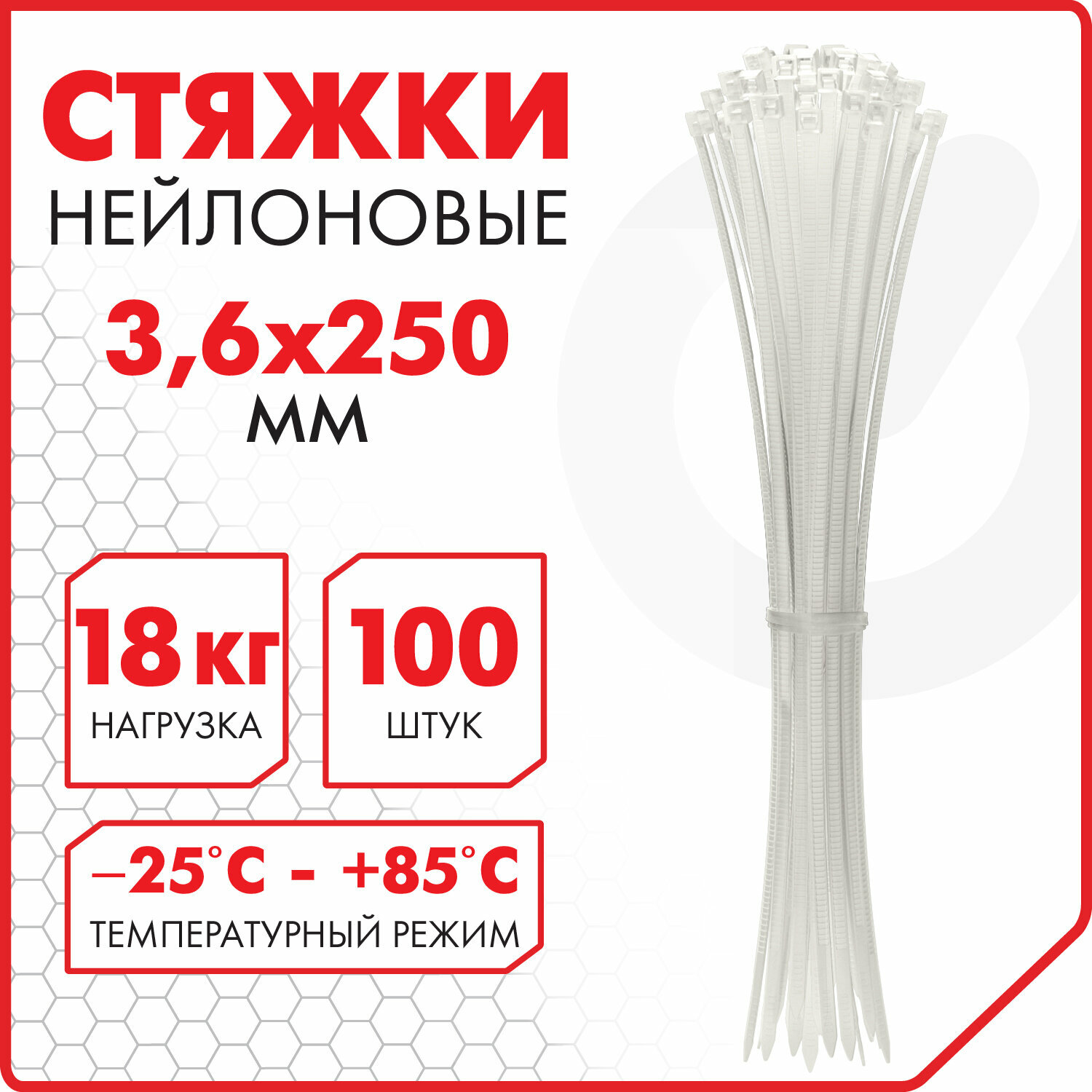 Стяжка кабельная (хомут стяжной) REXANT 57-0251 3.6 х 250 мм 100 шт