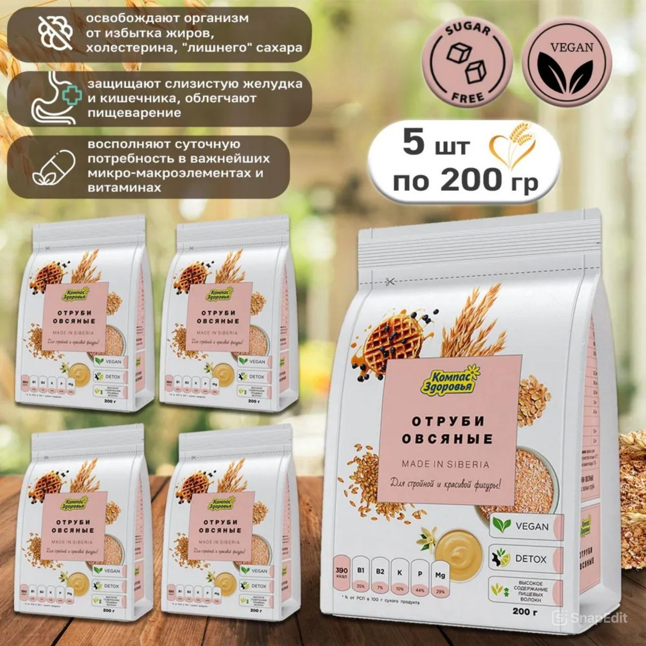 10 цен на Отруби овсяные 200 грамм. (Компас здоровья) (5 штук в упаковке)