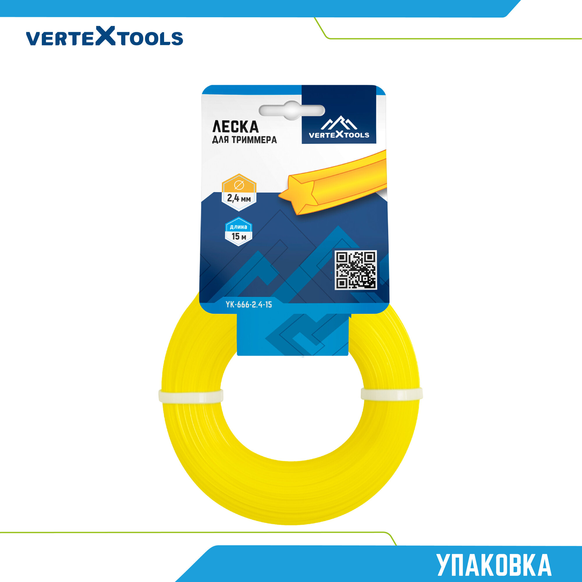 10 цен на Леска для триммера VertexTools 2,4 мм 15 метров звездочка, прочный нейлон