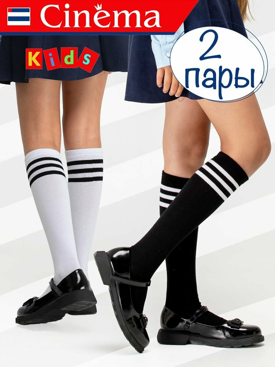 Гольфы Cinema детские 2 пары черные с белыми полосками, 2 пары, размер 32-34, , черный 475 ₽