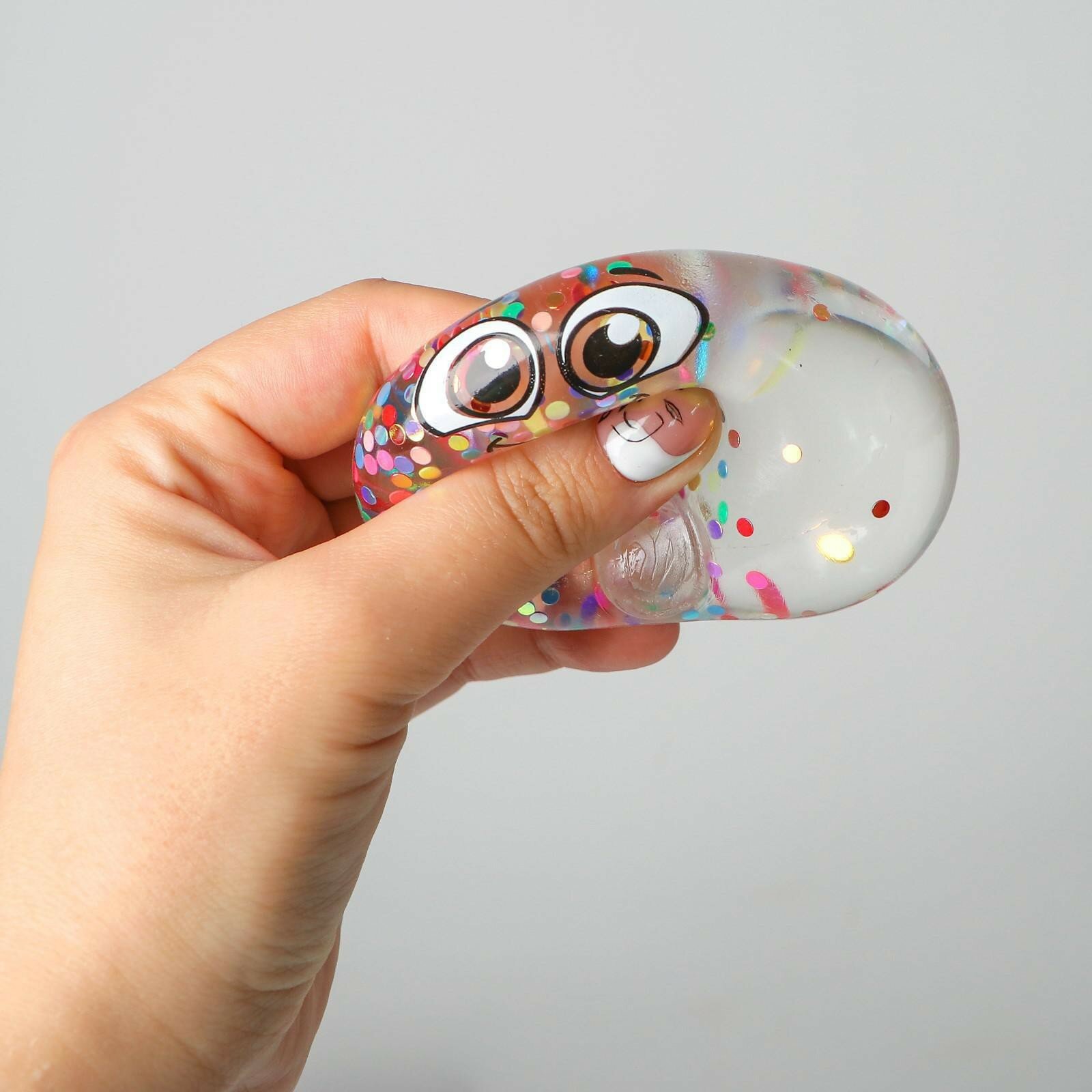 Отзывы на Мялка-антистресс "Смайлики" блестки, микс, с жидкостью, в шоубоксе, Сима-ленд