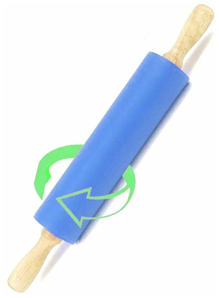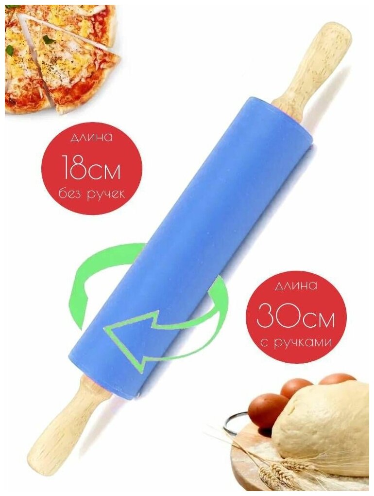 Скалка силиконовая с деревянными ручками, 18 см, голубой информация: