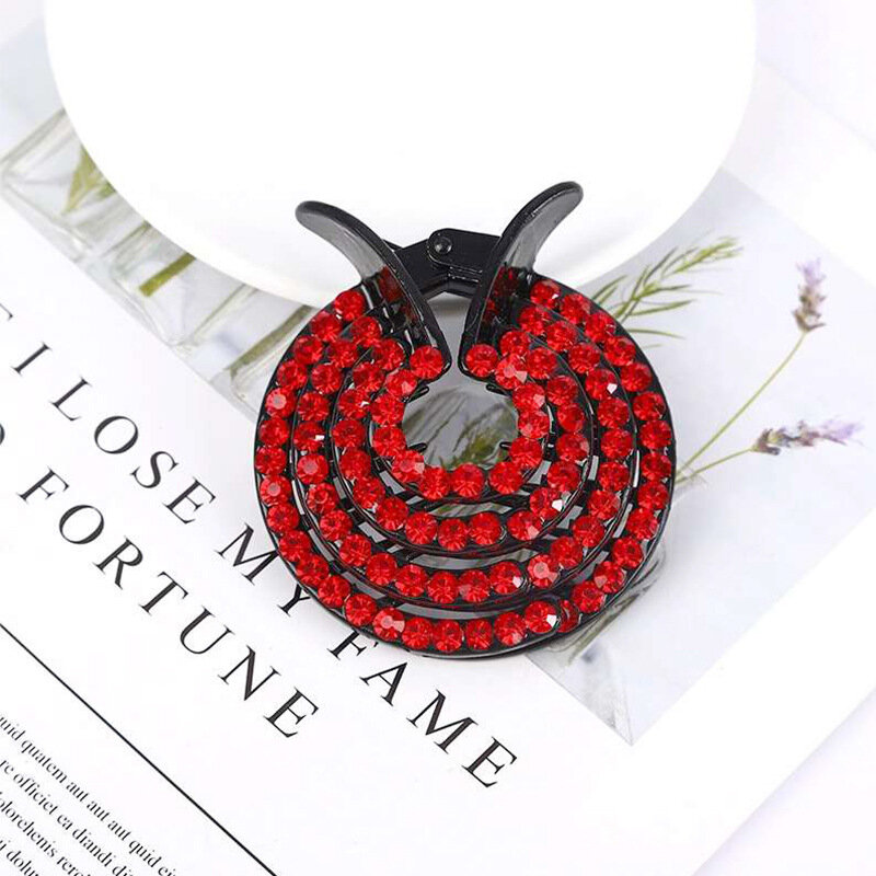10 цен на Заколка UNI-SHOP, для волос, женская, акриловая, с декоративными стразами, красная, 7 см