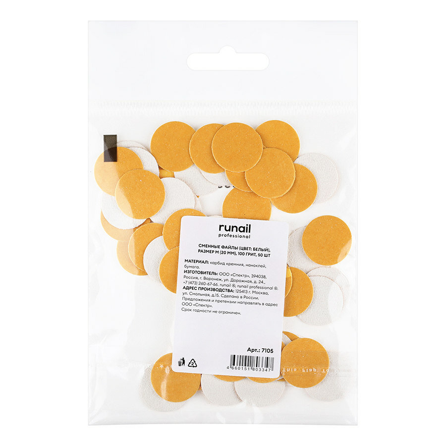 Сменные файлы ruNail, размер M, 100 грит, белые, 50 шт. информация: