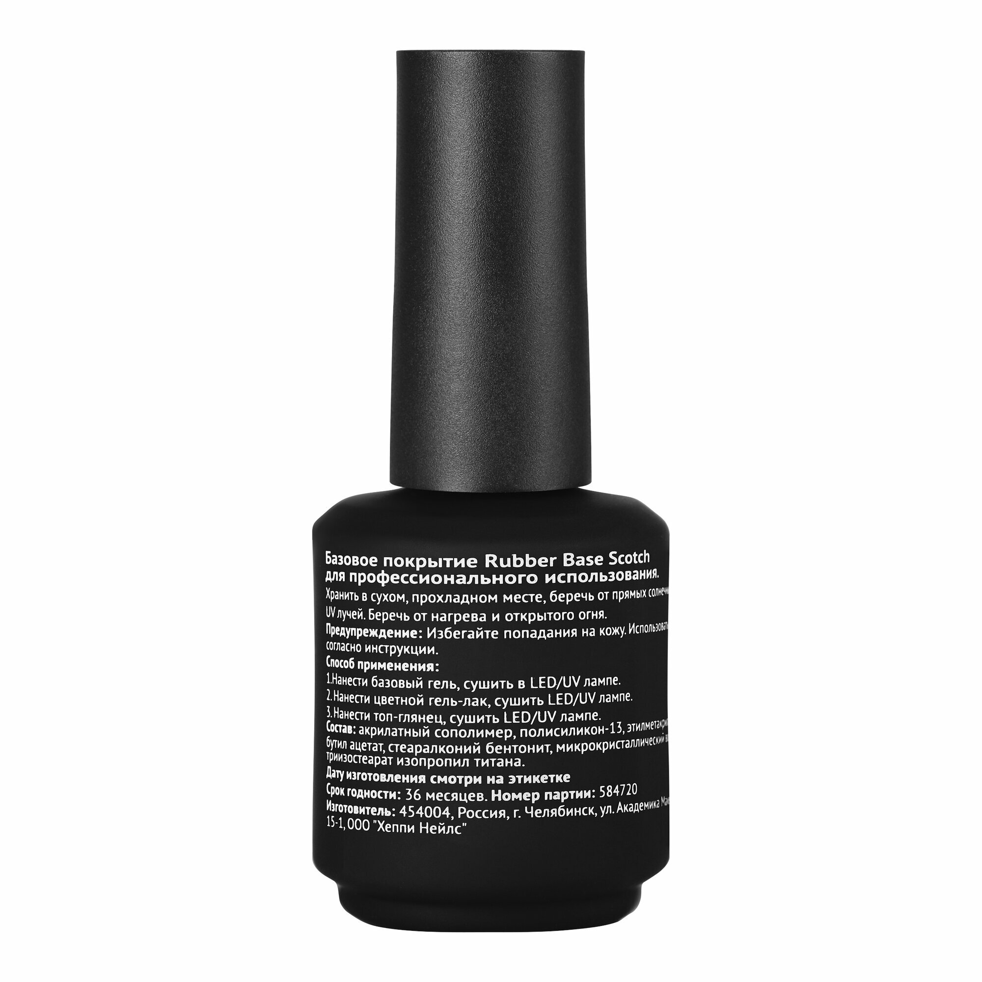 | Способ применения | подготавливаем ногтевую пластину, используя пилку мягкой абразивности(баф). Обезжириваем и наносим праймер. Наносим тонким слоем базу, при необходимости делаем выравнивание ногтевой пластины. Время полимеризации в UV-лампе - 1 минута, в LED-лампе - 30 секунд |