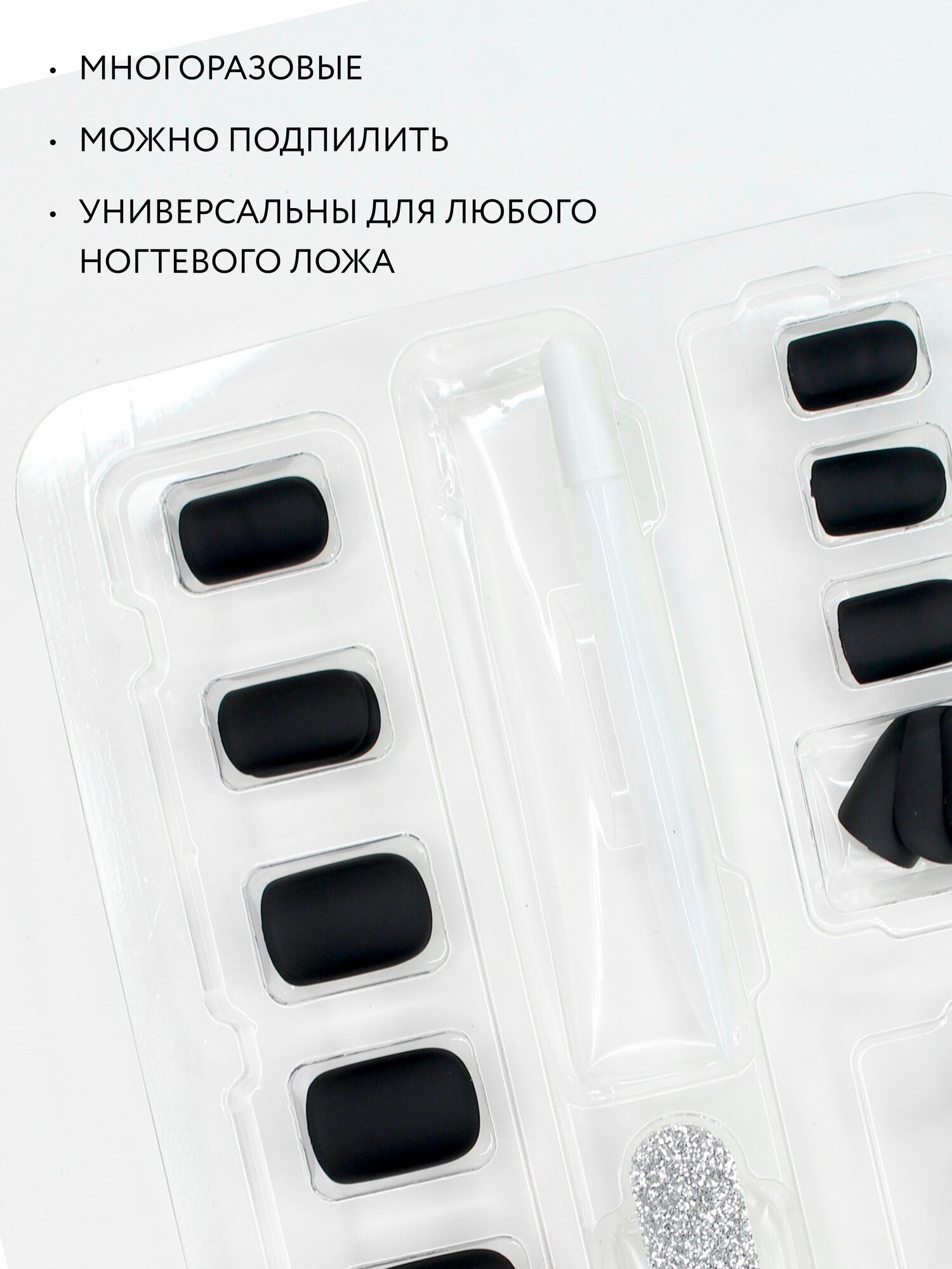 | Дополнительная информация | Чтобы использовать ногти повторно примени клеевые стикеры (24 шт); один раз для сверхсильной фиксации - клей ( можно приобрести в каталоге нашего магазина ) |