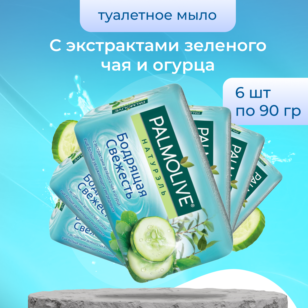 Мыло туалетное Palmolive Натурэль Бодрящая Свежесть, с экстрактами зеленого чая и огурца, 6 шт по 90 г