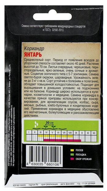 Кориандр "Кинза" Янтарь 2г Ср "Гавриш" - 10 пачек семян информация: