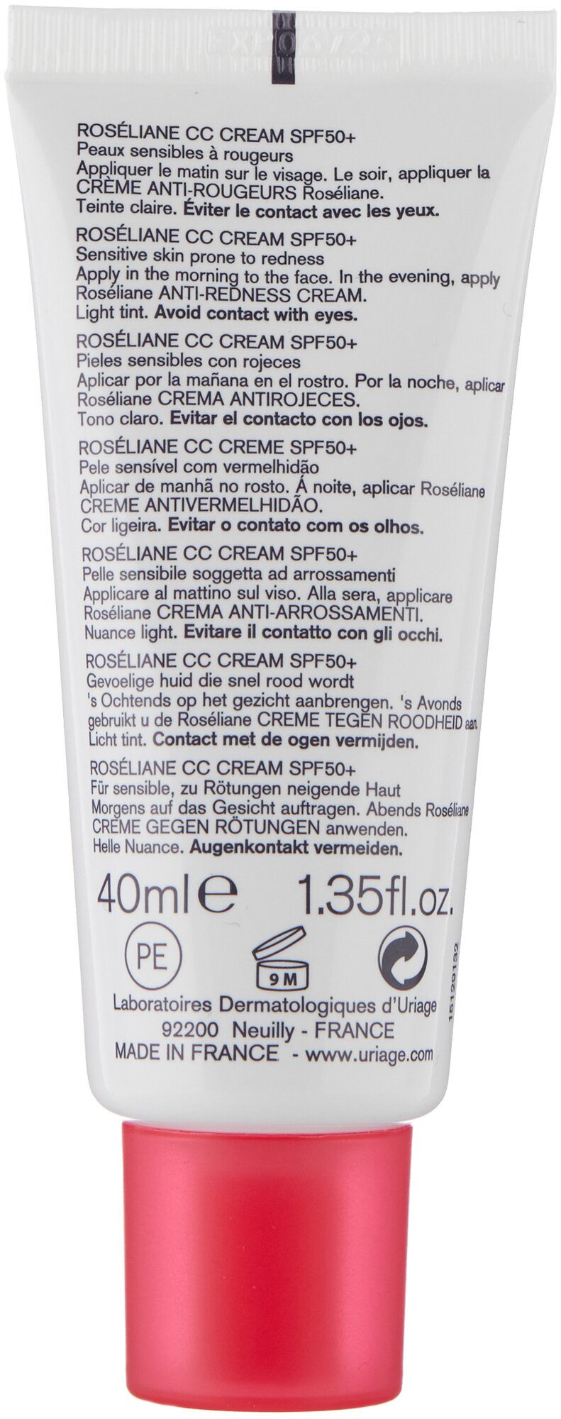 URIAGE, Roseliane Тональный защитный CC-крем для лица SPF 50+ для чувствительной кожи лица, бежевый тон (Розельян), 40 мл
