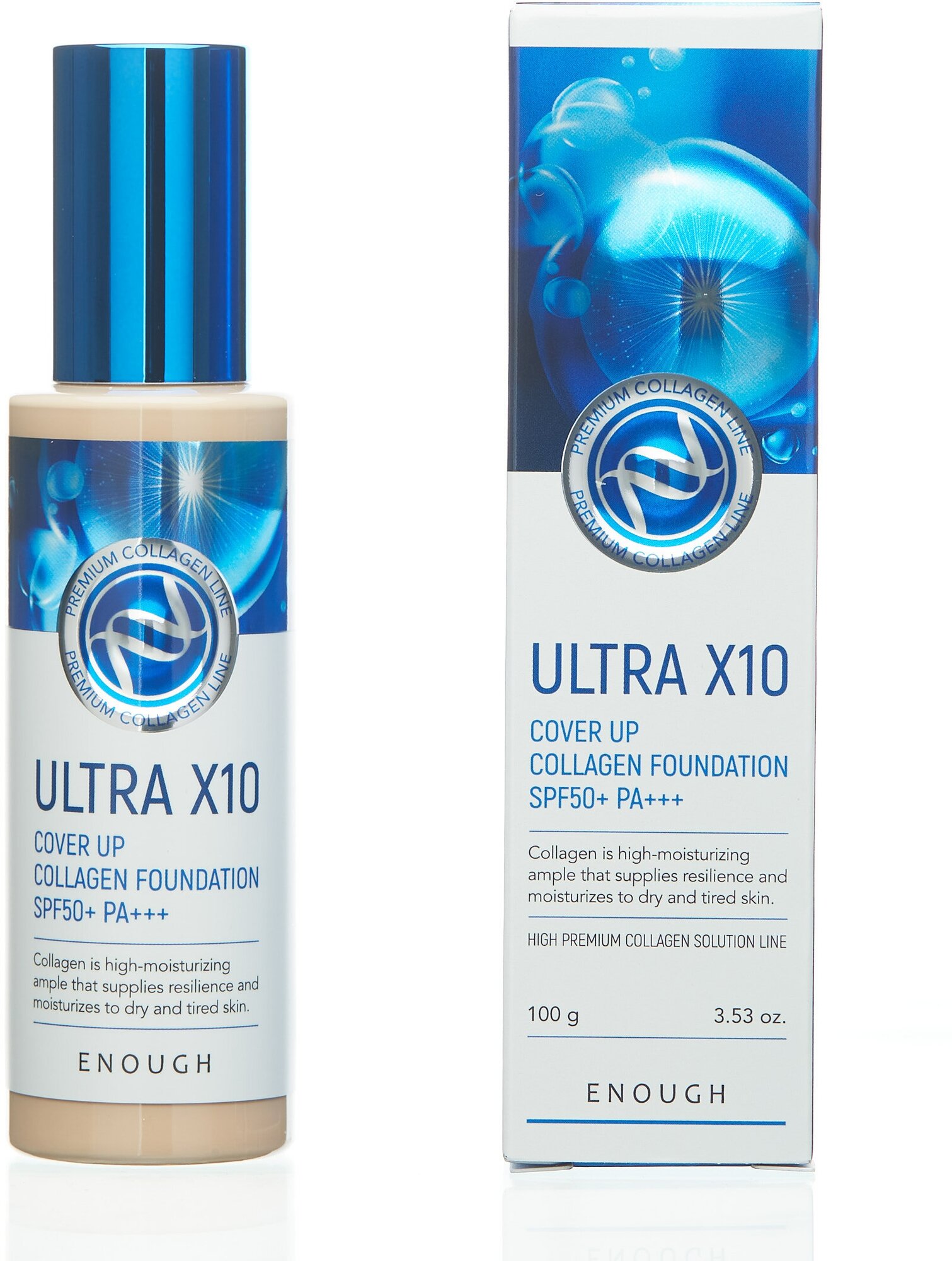 Отзывы на Основа тональная для лица `ENOUGH` Premium UltraX10 Cover Up Collagen SPF50+, тон 13