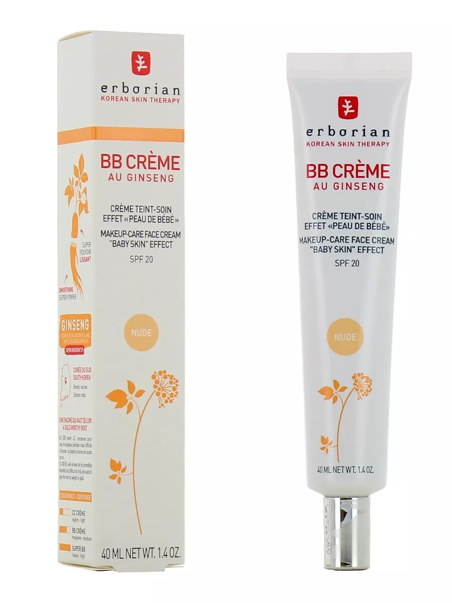 10 цен на ERBORIAN BB-крем для лица с эффектом «кожи младенца» BB Crème Au Ginseng, SPF 20, Натурально-бежевый, Nude, 40 мл